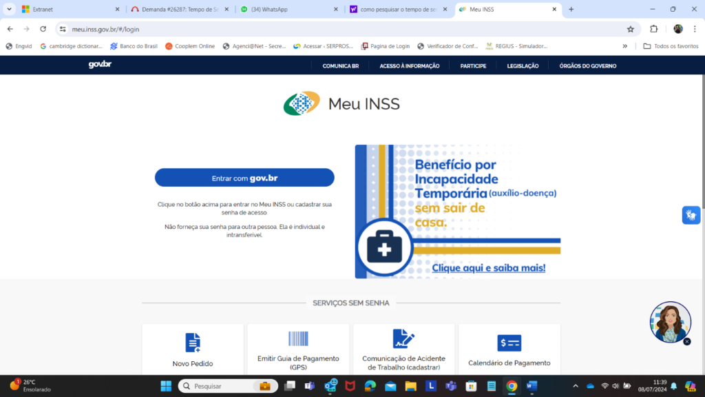 - Acesse o site Meu INSS e clique no botão “Entrar com GOV.BR” para entrar ou cadastrar sua senha de acesso.