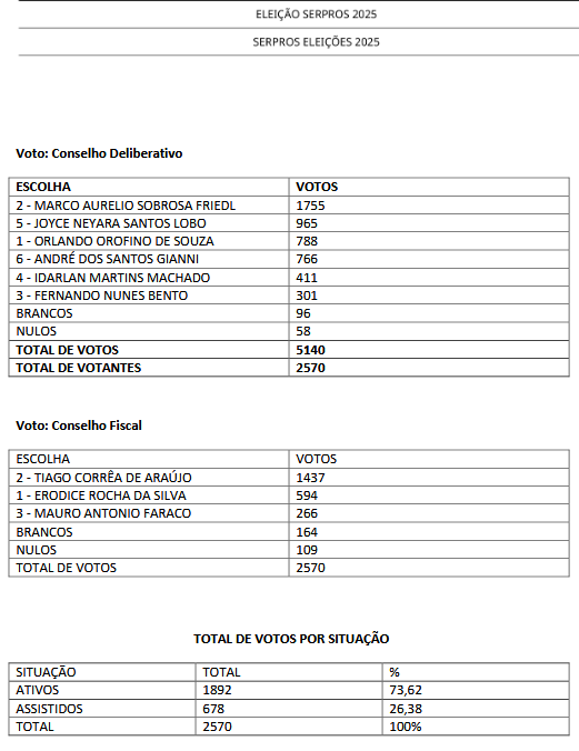6 – O resultado final das Eleições de 2025 homologado pelo Conselho Deliberativo será formalmente divulgado em 26/08/2025, conforme previsto na Etapa 42 do Cronograma Eleitoral.