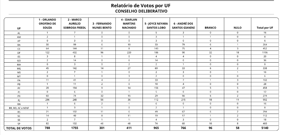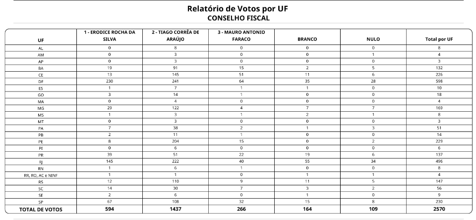 1 – A Comissão Eleitoral informa que, conforme previsto na Etapa 38 do Cronograma Eleitoral, nesta data é realizada a divulgação do resultado da votação após o encerramento dos prazos recursais e apreciação pela Diretoria Executiva.
