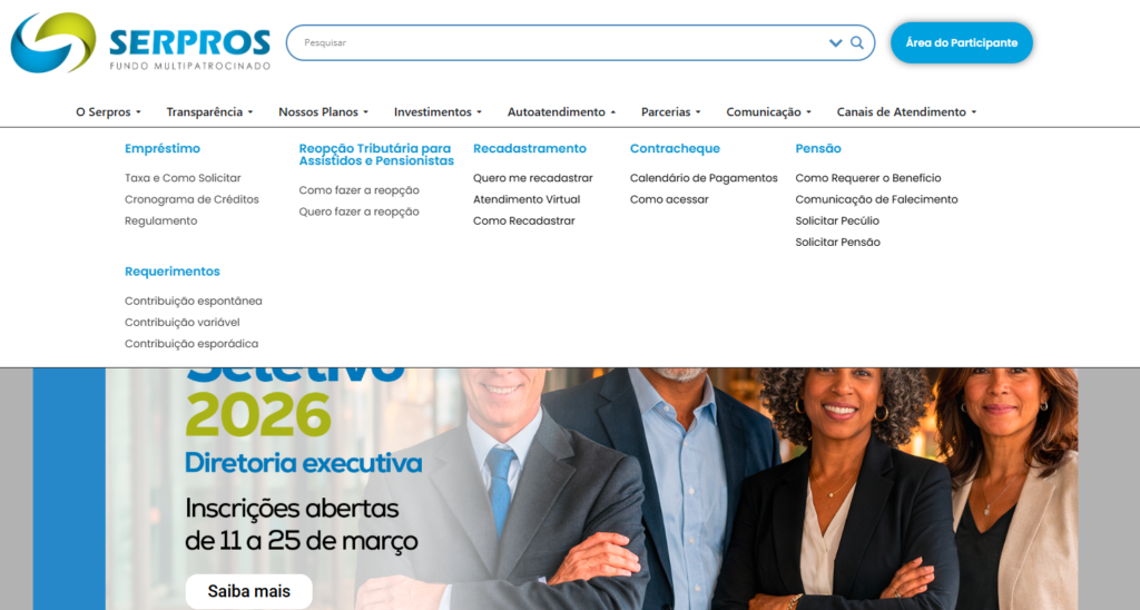 Estão abertas, de 11 a 25 de março de 2026, as inscrições para o Processo Seletivo Obrigatório da Diretoria Executiva. A seleção será conduzida pelo Conselho Deliberativo com base em critérios técnicos e objetivos, reforçando os princípios de transparência, integridade e boas práticas de governança. “O Serpros é um pilar de segurança e bem-estar para […]