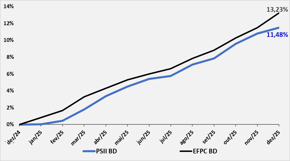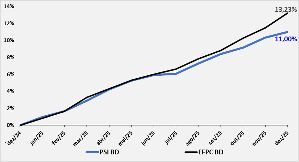 12 meses – comparativo com a média das Entidades Fechadas de Previdência Complementar (EFPC) – planos BD (fonte: ABRAPP – dados disponíveis até Dez/25)