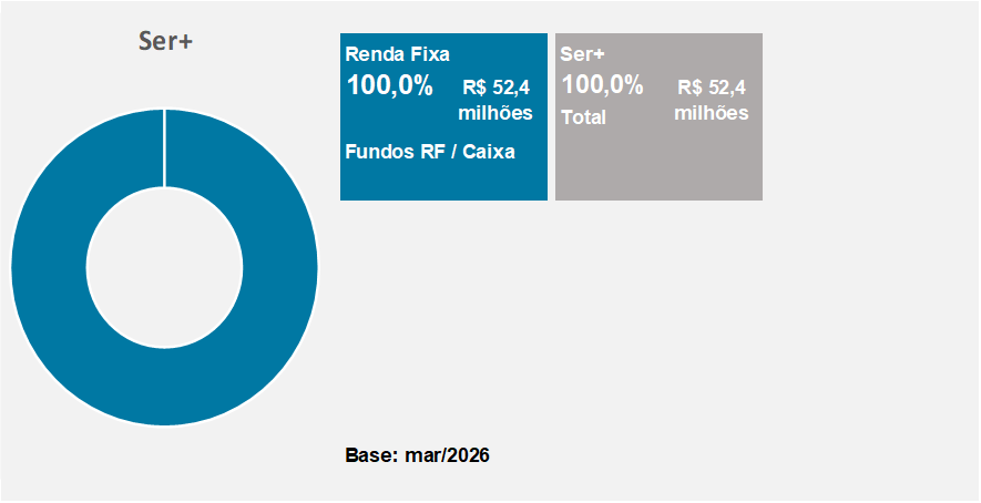 No Ser+, a carteira é composta por títulos de renda fixa de curto prazo, que têm rendimento próximo da Selic (taxa básica de juros do Brasil) e do CDI (Certificado de Depósito Interbancário) e fundos de renda de fixa atrelados ao rendimento do CDI.