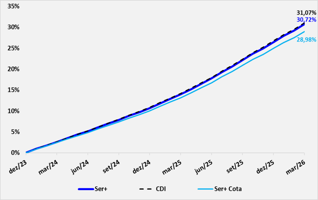 dez/23 – mar/26 – nesse periodo, os investimentos do Plano obtiveram 99% do CDI.